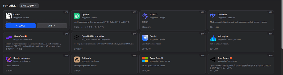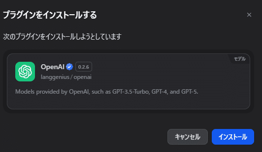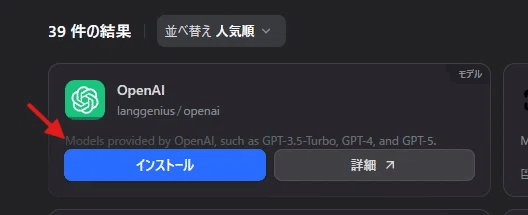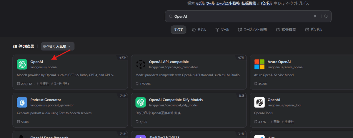 それでは、Dify公式のOpenAIプラグインを選択してください。