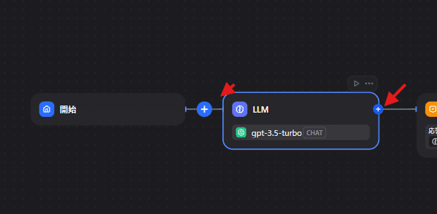 チャットフローを開き、ノードの選択画面をノード間などの+ボタンを選択して開く。
