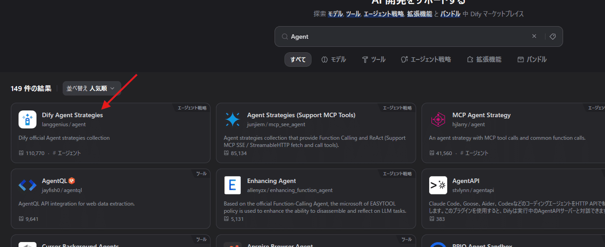 Dify Agent Strategiesも同じ流れでインストールしてください(これがないとエージェントが実装できません)