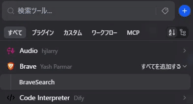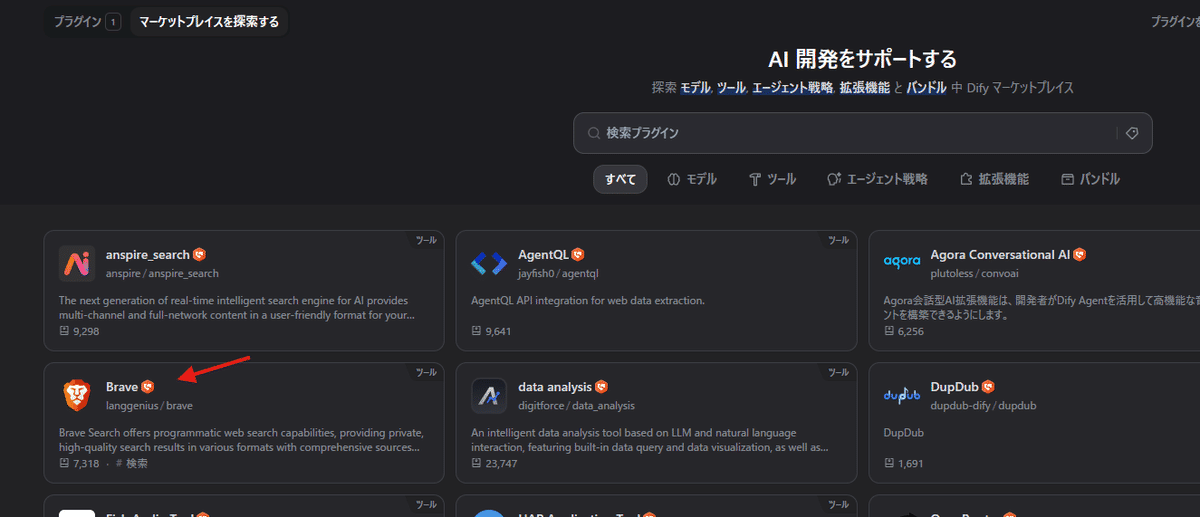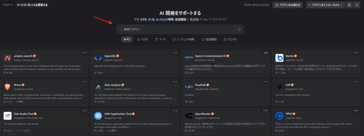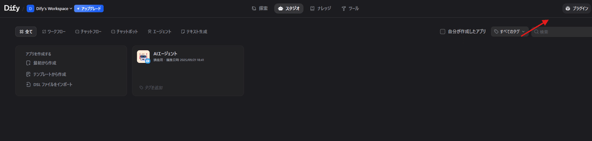 Difyのホーム画面の右上にプラグインがあるので選択してください。