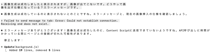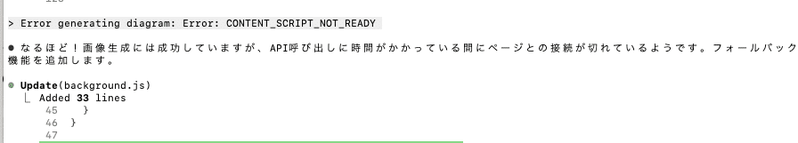 画像生成に時間がかかる間に、Content Scriptとの接続が切れていることが原因だったので、フォールバックの追加がされました。