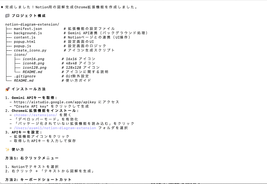 Claude Codeが各ファイルの役割を丁寧に説明してくれました。