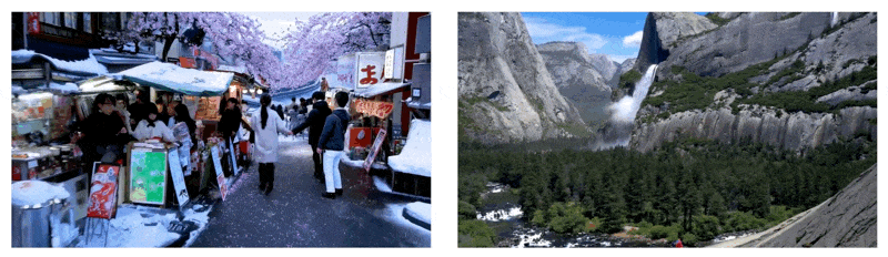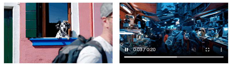 Soraは、2つの入力ビデオ間を徐々に補間し、全く異なる主題やシーン構成を持つビデオ間にシームレスなトランジションを作成することもできます。