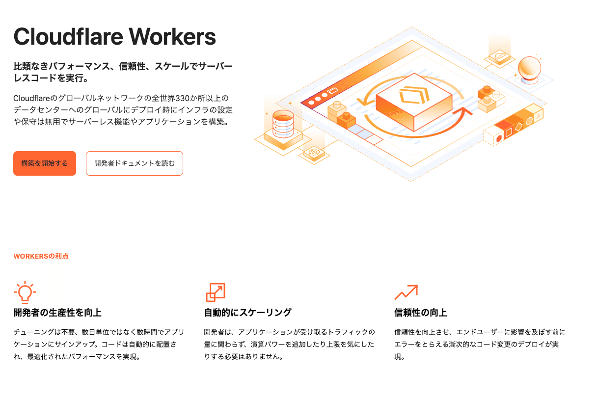 Workersは、Webサイトやアプリケーションの機能を拡張するためのプラットフォームです。Cloudflareの世界中に広がるデータセンターのエッジサーバー上で、JavaScriptなどのコードを実行できます。