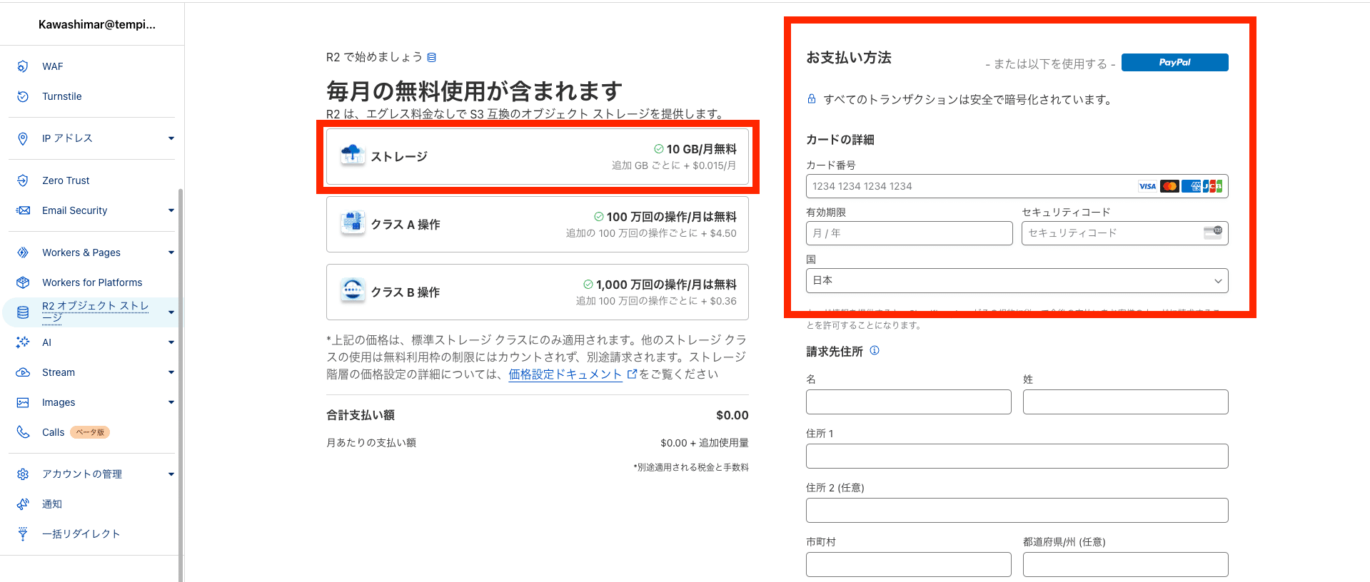 R2は支払い情報を登録後に使用可能になります。