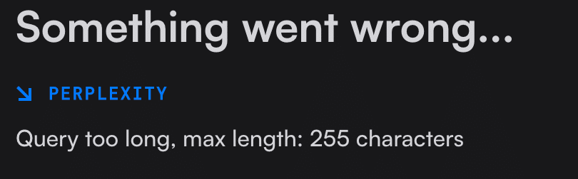 そもそも Perplexity Ask は検索エンジンとして使われることを想定しているため、入力可能な文字数は255文字に過ぎません。