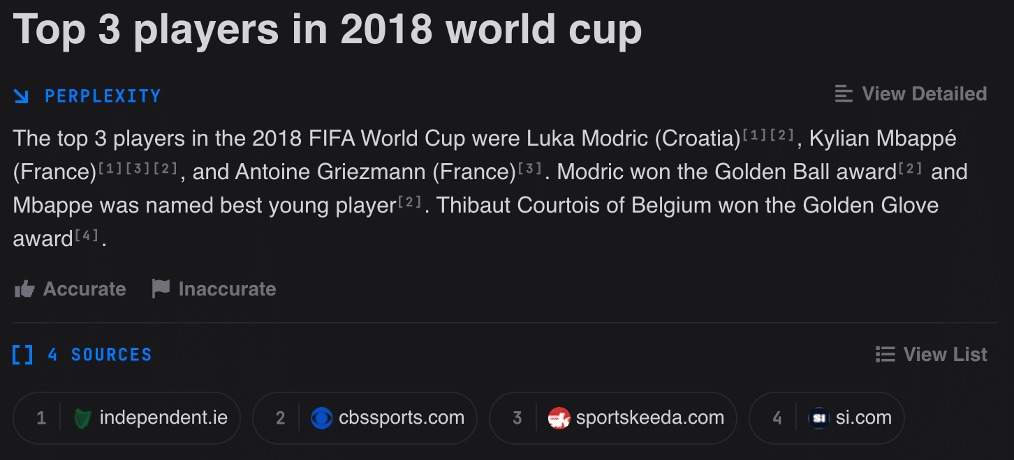 Perplexity Ask はモドリッチ、エムバペ、グリーズマンとの回答でした。