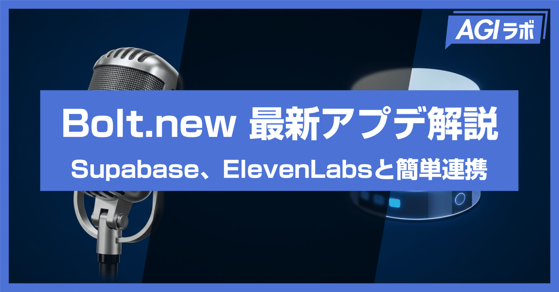Bolt.new最新アップデート解説:Supabase & ElevenLabsと簡単連携#Bolt#ElevenLabs#ニュース#音声Bolt.new最新アップデート解説:Supabase & ElevenLabsと簡単連携2024-12-27