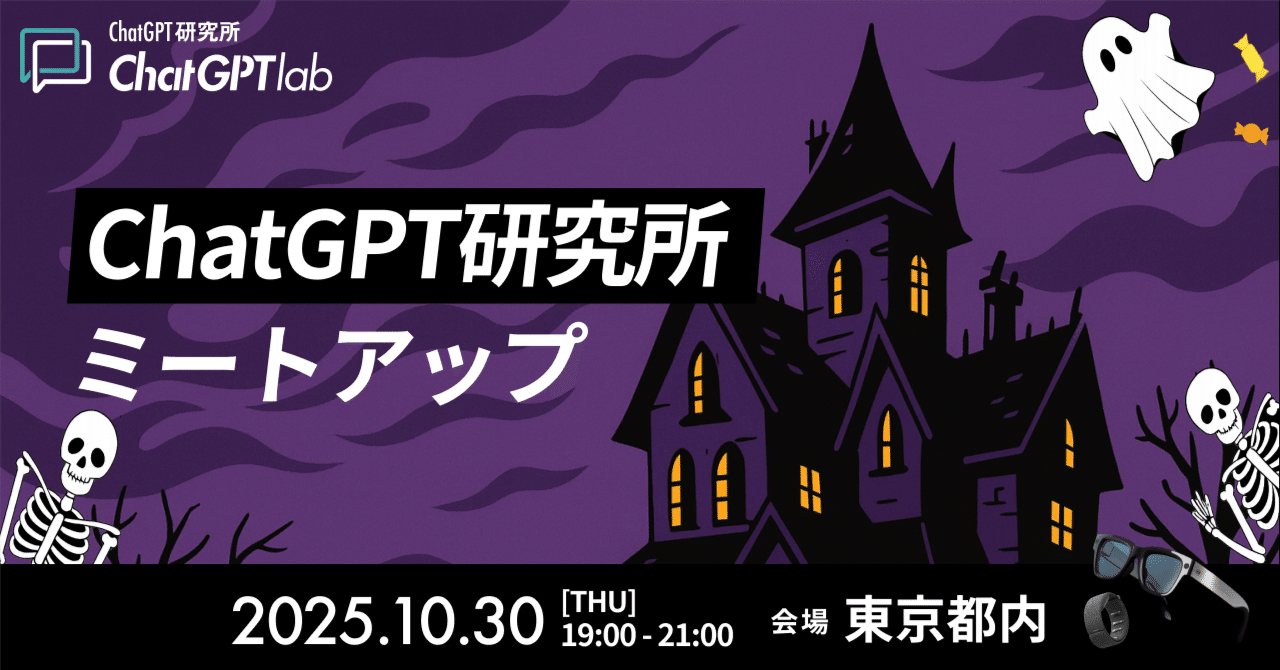 ChatGPT研究所ミートアップ!@東京都内 10/30(木) 開催決定!#ChatGPT#イベント#ニュースChatGPT研究所ミートアップ!@東京都内 10/30(木) 開催決定!2025-10-20