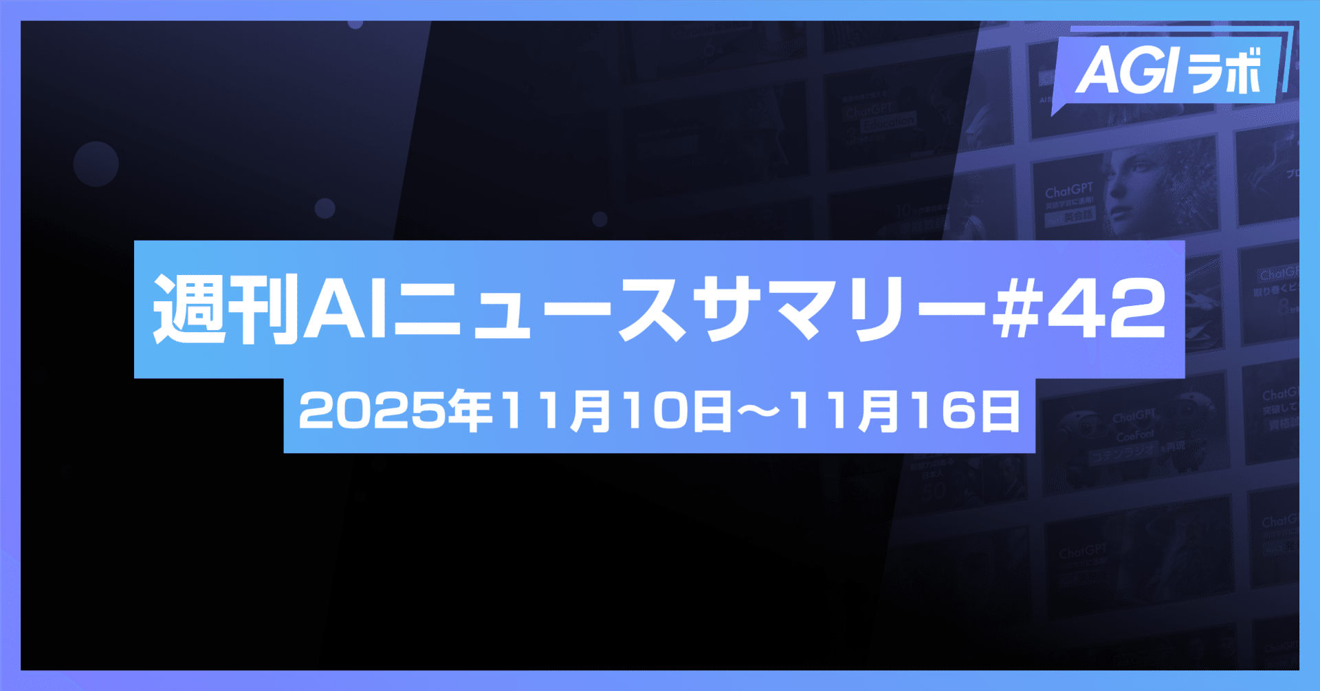 【週刊AI】OpenAI「GPT-5.1」で会話体験が進化。世界モデルとAIインフラ投資も前進 | #42 2025年11月10日〜11月16日#ChatGPT#ニュース#週刊AI【週刊AI】OpenAI「GPT-5.1」で会話体験が進化。世界モデルとAIインフラ投資も前進 | #42 2025年11月10日〜11月16日2025-11-16
