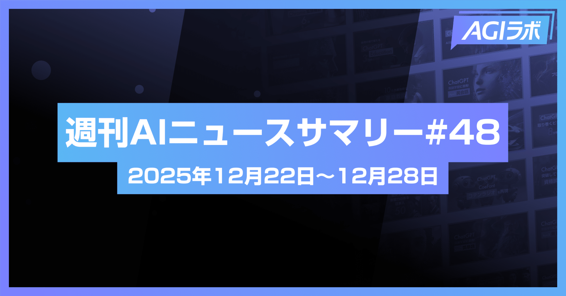 【週刊AI】OpenAI「GPT-5.2」公開。Google・Anthropicら、エージェント標準化に向けた枠組みが発足 | #46#ChatGPT#OpenAI#ニュース#週刊AI【週刊AI】OpenAI「GPT-5.2」公開。Google・Anthropicら、エージェント標準化に向けた枠組みが発足 | #462025-12-14