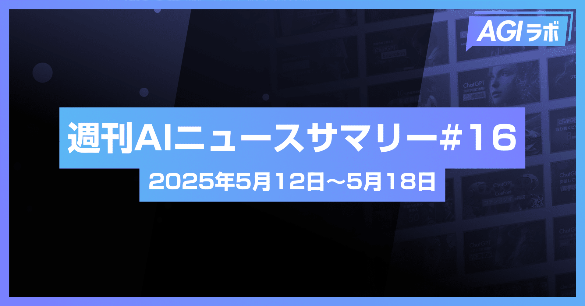 【週刊AI】OpenAI、新AIコーディングエージェント「Codex」発表。マイクロソフト、大規模レイオフで業界に衝撃 | #16 2025年5月12日~5月18日#Codex#OpenAI#ニュース#週刊AI【週刊AI】OpenAI、新AIコーディングエージェント「Codex」発表。マイクロソフト、大規模レイオフで業界に衝撃 | #16 2025年5月12日~5月18日2025-05-18