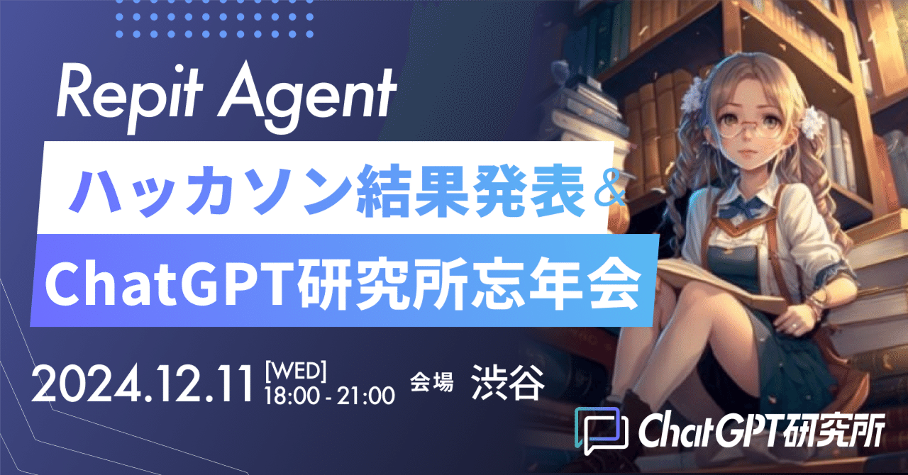 ChatGPT研究所忘年会 2025年12月20日(土) 18:00〜 @都内 #ChatGPT#イベントChatGPT研究所忘年会 2025年12月20日(土) 18:00〜 @都内 2025-11-21