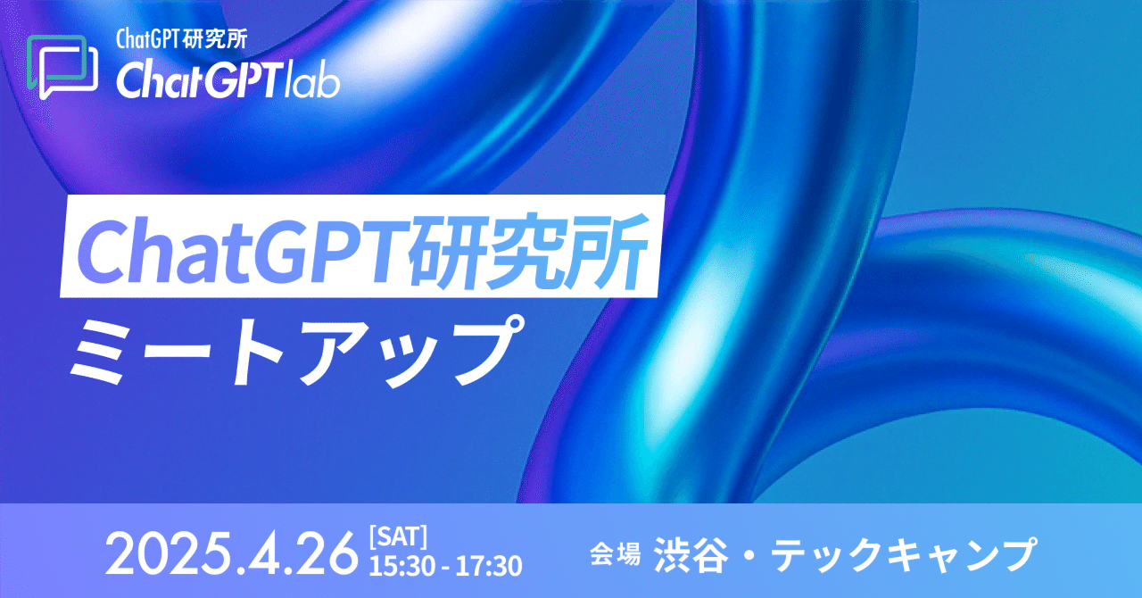 ChatGPT研究所オフラインミートアップ @渋谷 4/26(土) 開催決定!#ChatGPT#イベント#ニュースChatGPT研究所オフラインミートアップ @渋谷 4/26(土) 開催決定!2025-04-16