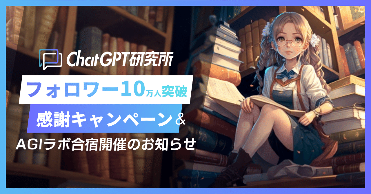 【ChatGPT研究所10万人フォロワー突破記念】有料コミュニティ『AGIラボ』初月無料キャンペーン&合宿イベント開催!#ChatGPT#イベント【ChatGPT研究所10万人フォロワー突破記念】有料コミュニティ『AGIラボ』初月無料キャンペーン&合宿イベント開催!2024-09-30