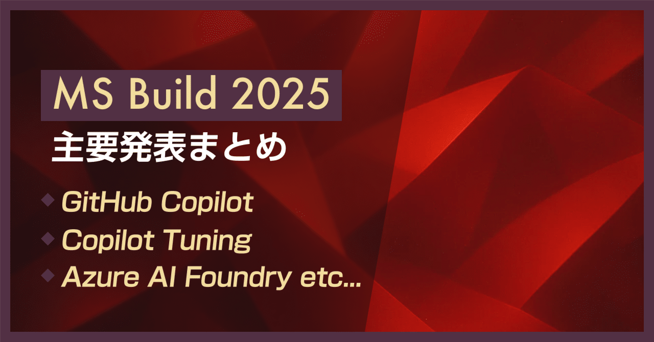 Microsoft Build 2025 主要発表まとめ | 新Copilot、MCP対応など解説。#Copilot#MCP#イベント#ニュースMicrosoft Build 2025 主要発表まとめ | 新Copilot、MCP対応など解説。2025-05-20