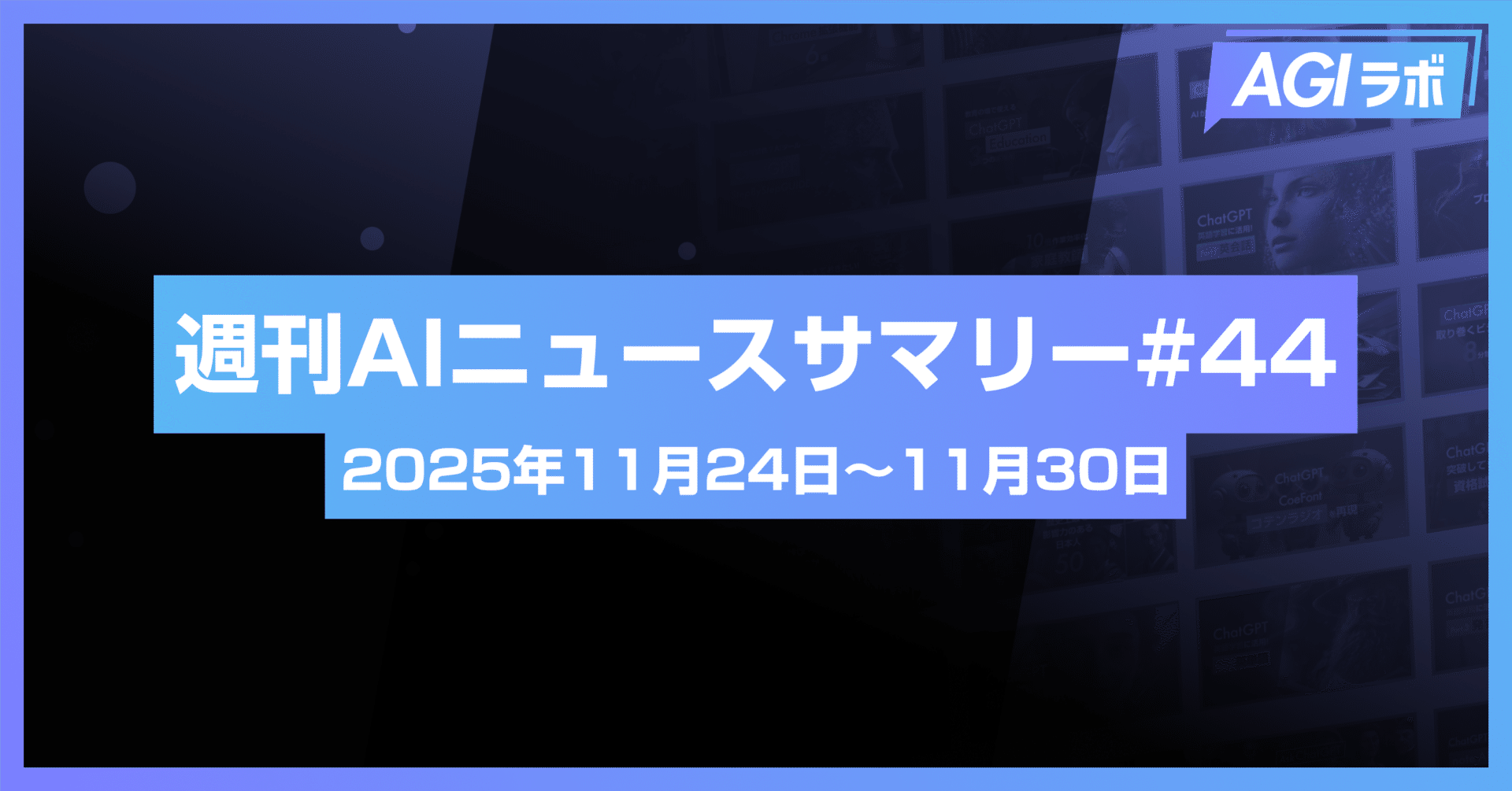 【週刊AI】OpenAI「GPT-5.2」公開。Google・Anthropicら、エージェント標準化に向けた枠組みが発足 | #46#ChatGPT#OpenAI#ニュース#週刊AI【週刊AI】OpenAI「GPT-5.2」公開。Google・Anthropicら、エージェント標準化に向けた枠組みが発足 | #462025-12-14