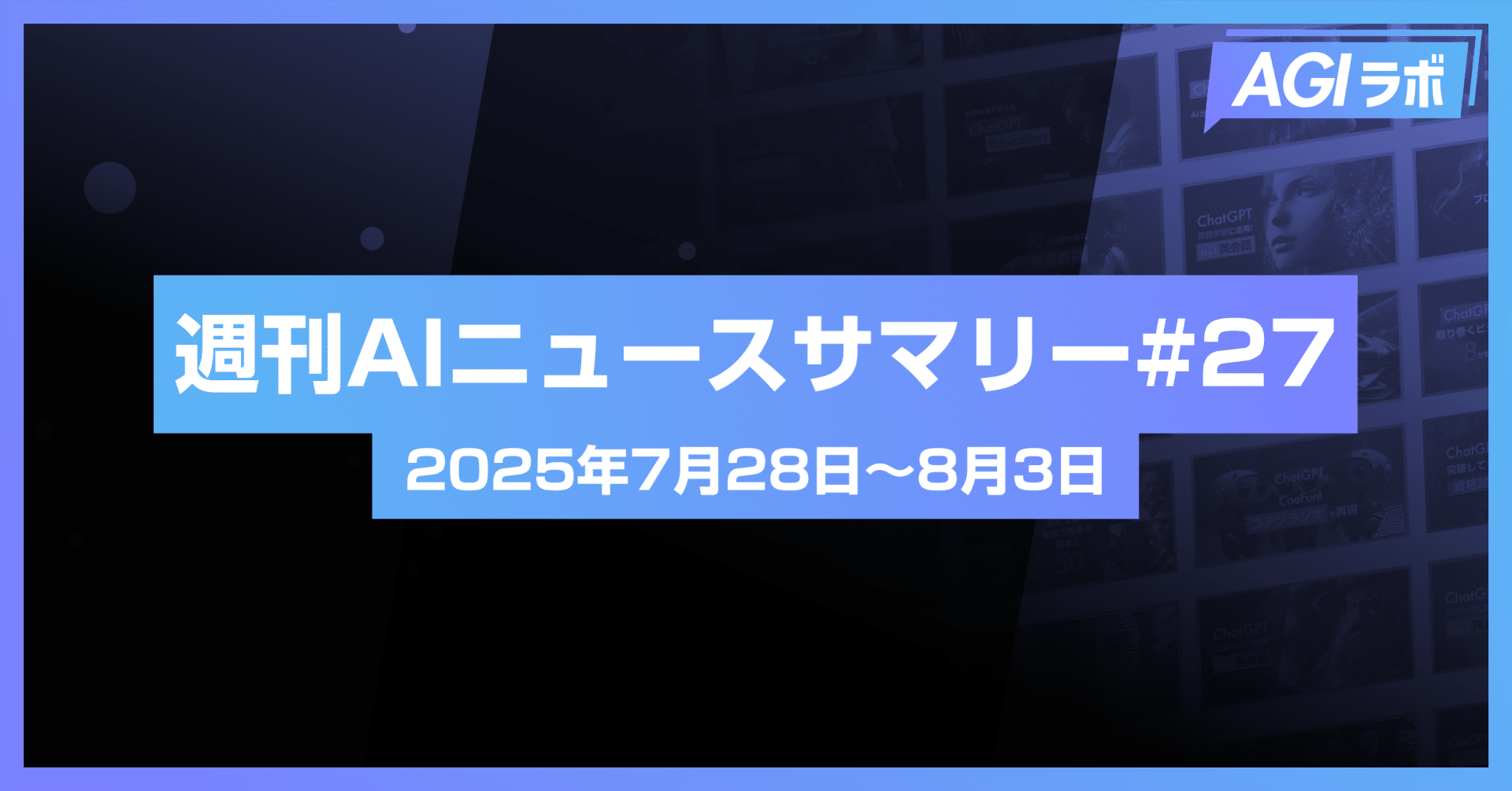 【週刊AI】OpenAI、新たに1.2兆円を調達。Metaは「パーソナル超知能」開発へ巨額投資 | #27 2025年7月28日〜8月3日#OpenAI#ニュース#週刊AI 【週刊AI】OpenAI、新たに1.2兆円を調達。Metaは「パーソナル超知能」開発へ巨額投資 | #27 2025年7月28日〜8月3日2025-08-03
