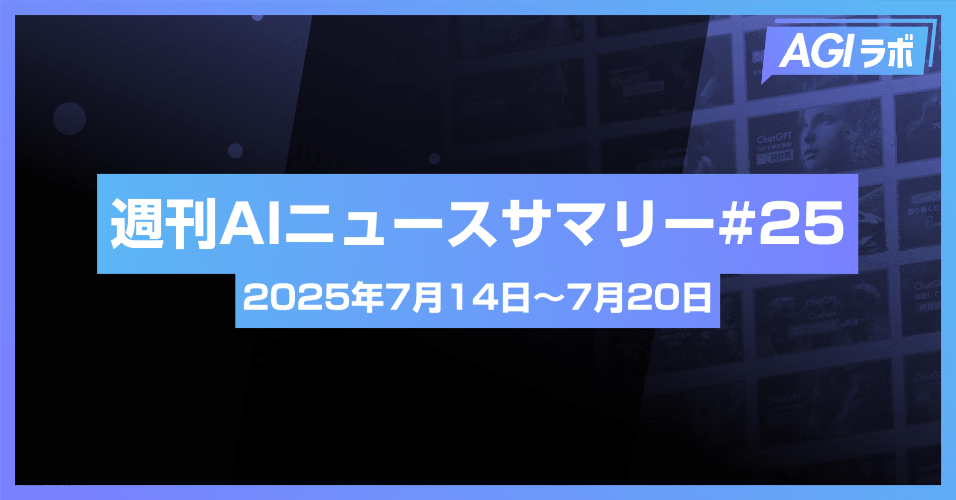 【週刊AI】 OpenAI、ブラウザ操作を代行する新エージェント発表。xAIは3Dキャラ「Ani」と対話可能に | #25 2025年7月14日〜7月20日#OpenAI#ニュース#週刊AI【週刊AI】 OpenAI、ブラウザ操作を代行する新エージェント発表。xAIは3Dキャラ「Ani」と対話可能に | #25 2025年7月14日〜7月20日2025-07-20