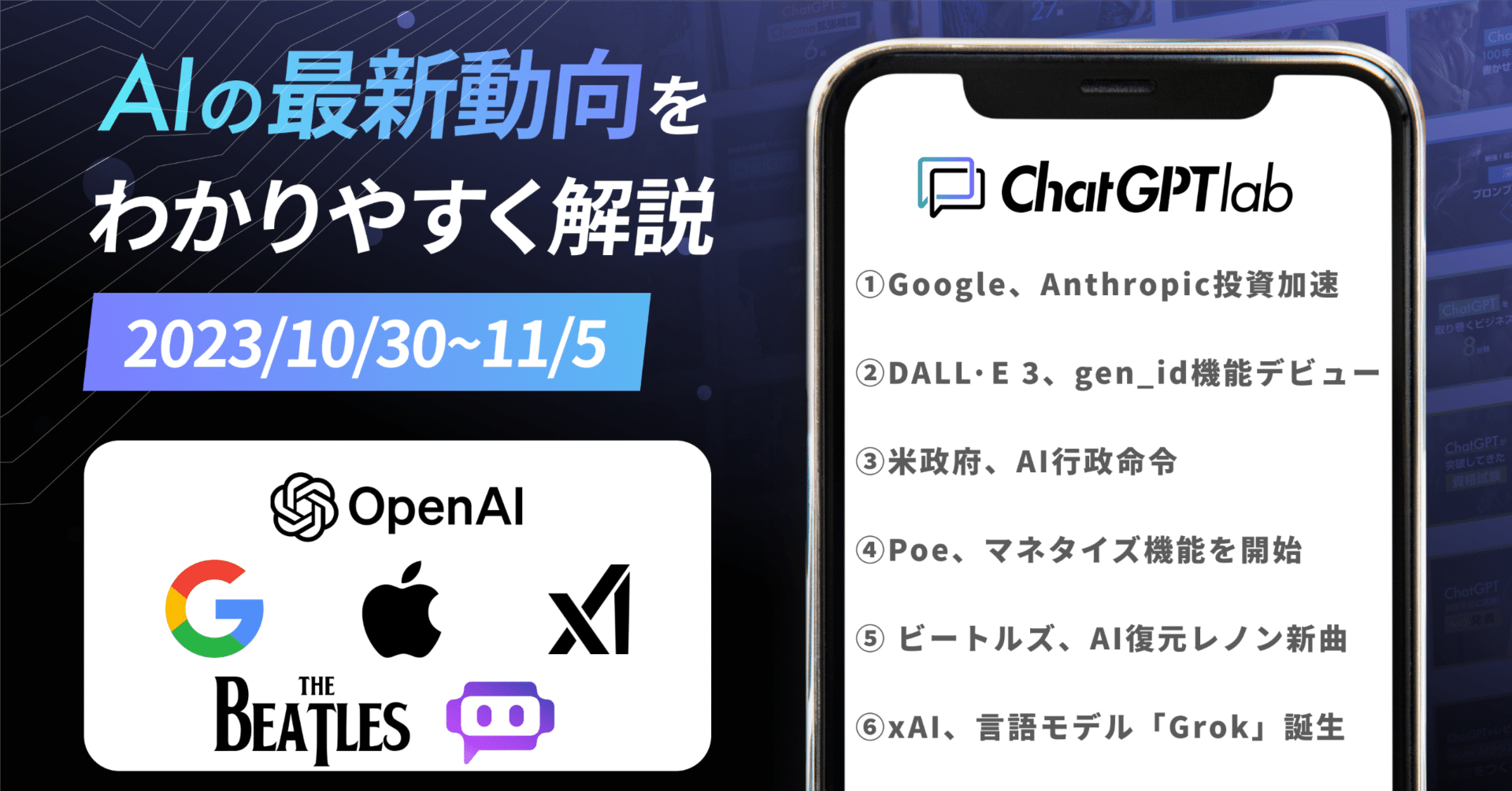 🚨主要AIニュース8選: 𝕏, Google, Poe, Apple, The Beatles...etc【10月30日~11月5日】#ニュース🚨主要AIニュース8選: 𝕏, Google, Poe, Apple, The Beatles...etc【10月30日~11月5日】2023-11-06